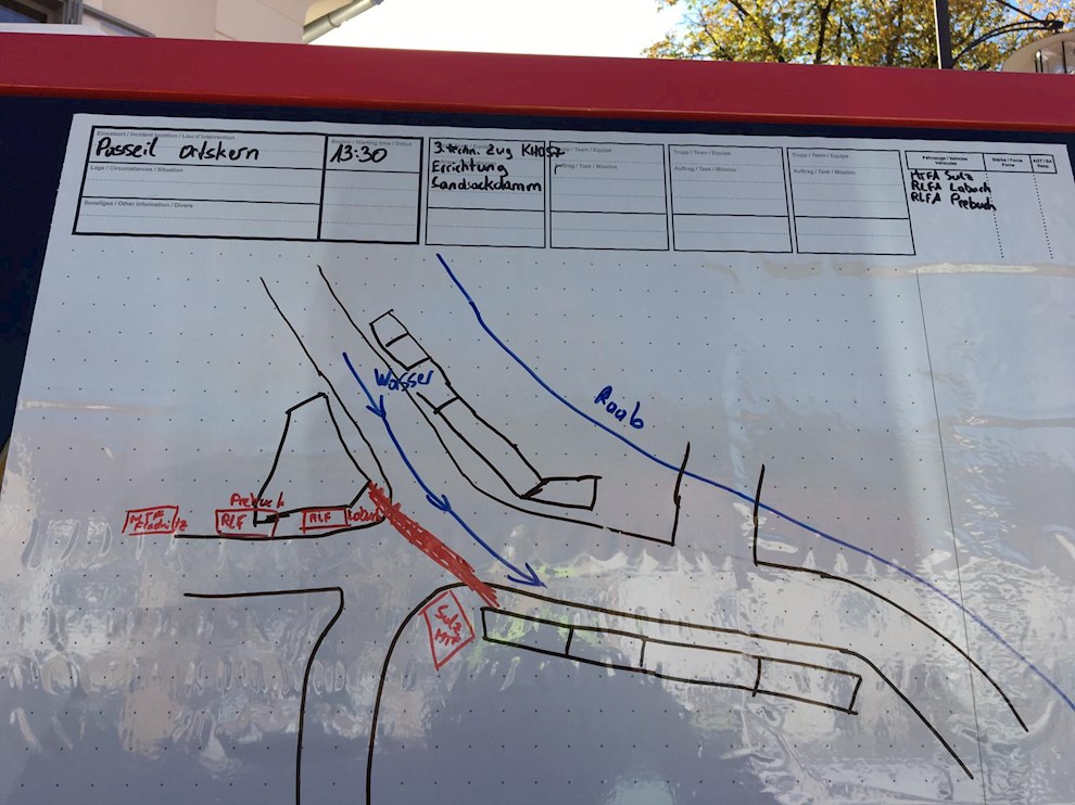 - Errichten von Ölsperren auf der Raab und Bergung von zwei IPC Containern (1000L Kunststofftank), lt. Übungsannahme jeweils befüllt mit Hydrauliköl