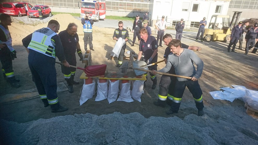 - Effizientes Befüllen und Bereitstellen einer großen Menge Sandsäcke (Übungsort: Bauhof Passail)