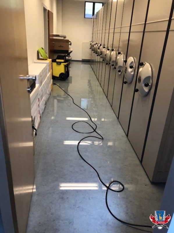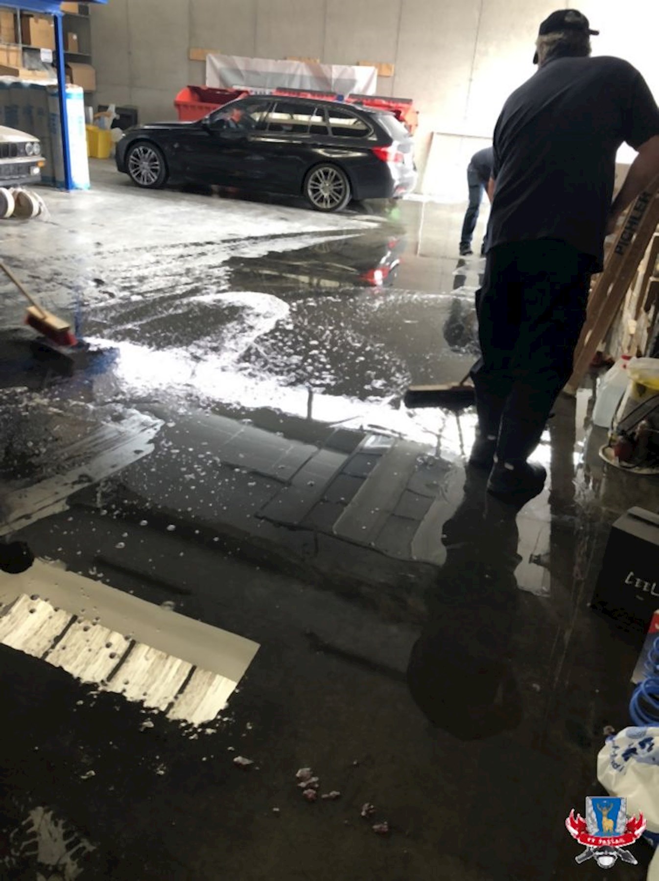 Tätigkeiten: Beseitigen des Wassers mit Nasssauger und Gummilippen