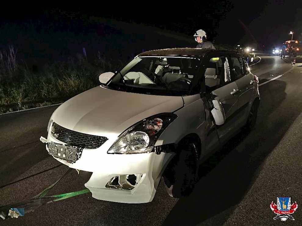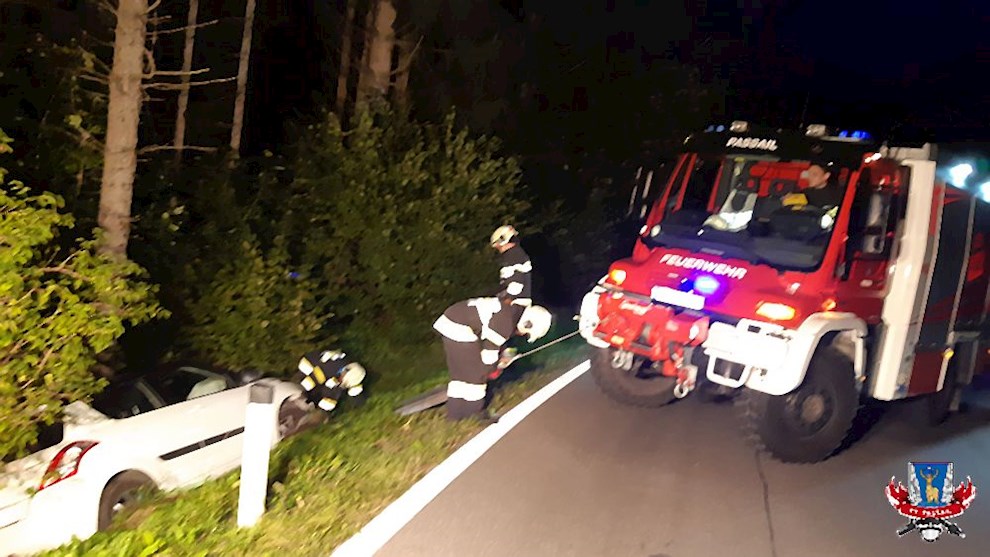 Grund der Alarmierung: PKW ist von der Straße abgekommen und lag im Straßengraben