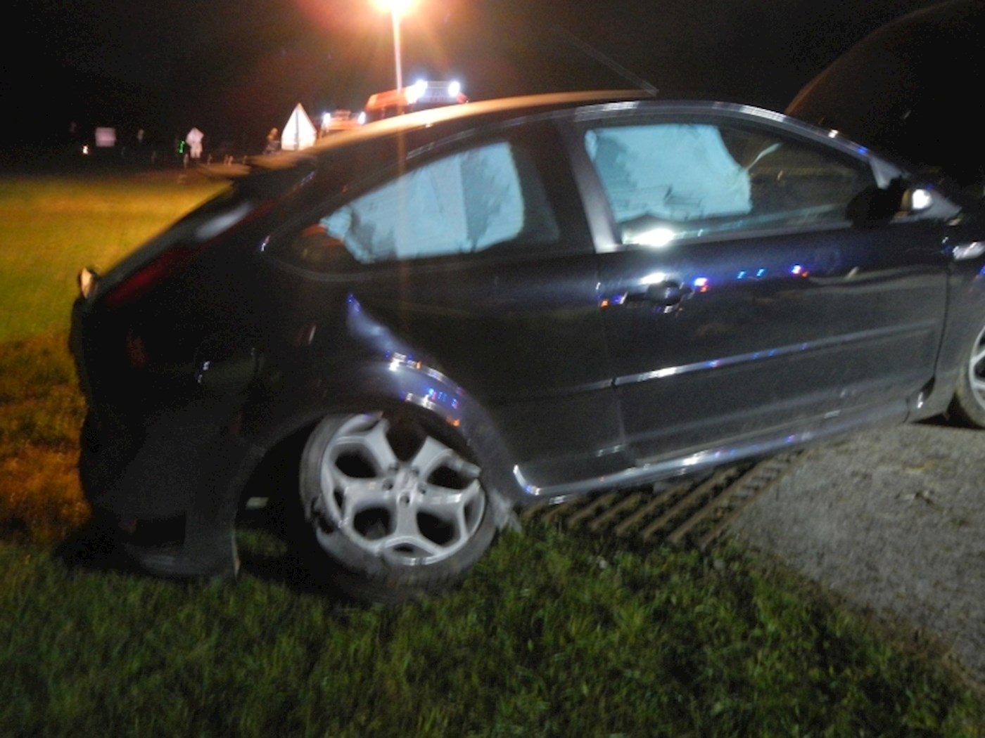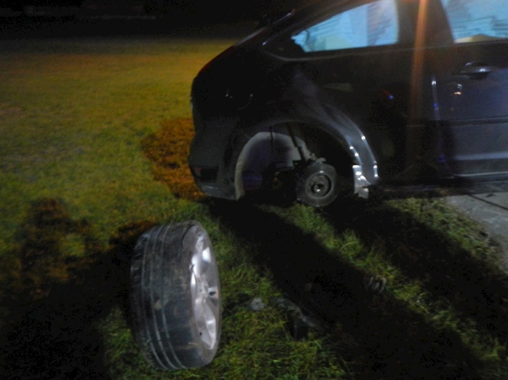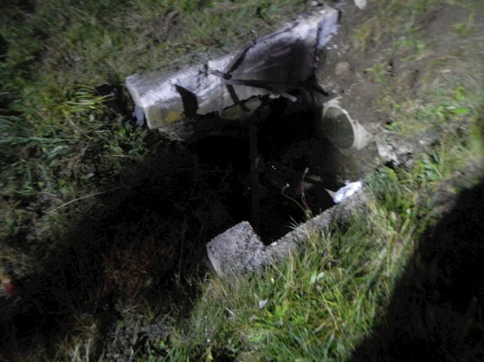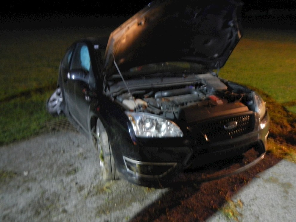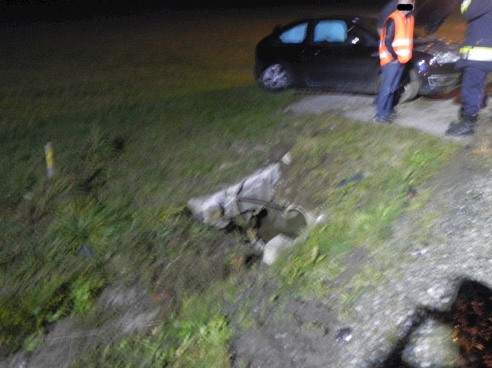 Ein PKW ist von der Fahrbahn abgekommen und hat einen Kanalschacht gerammt.