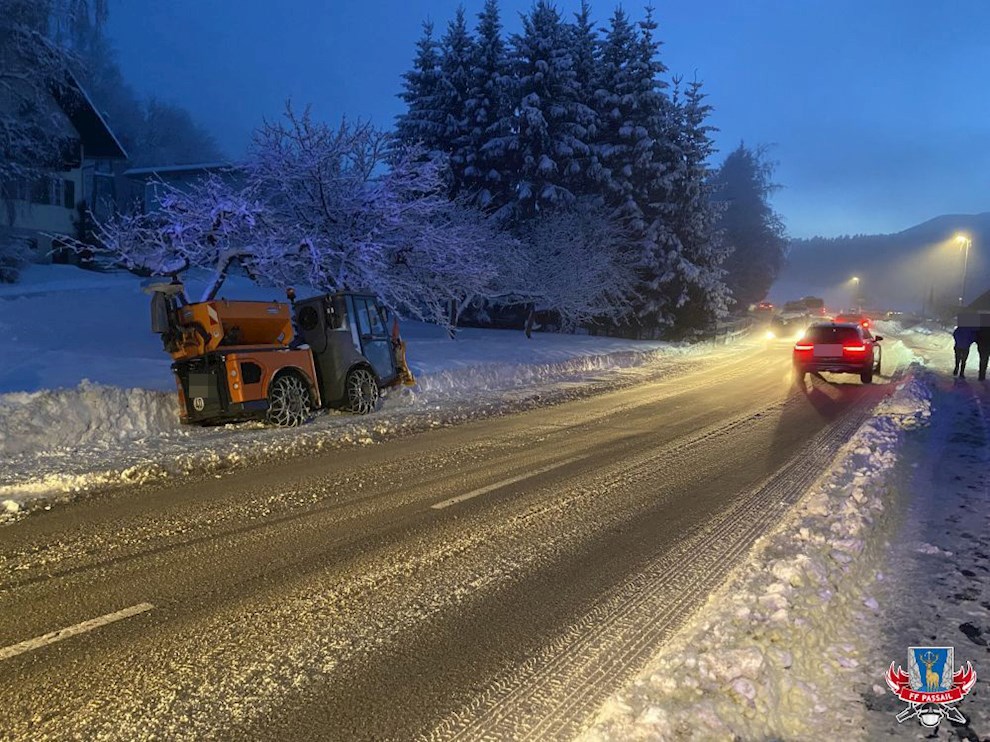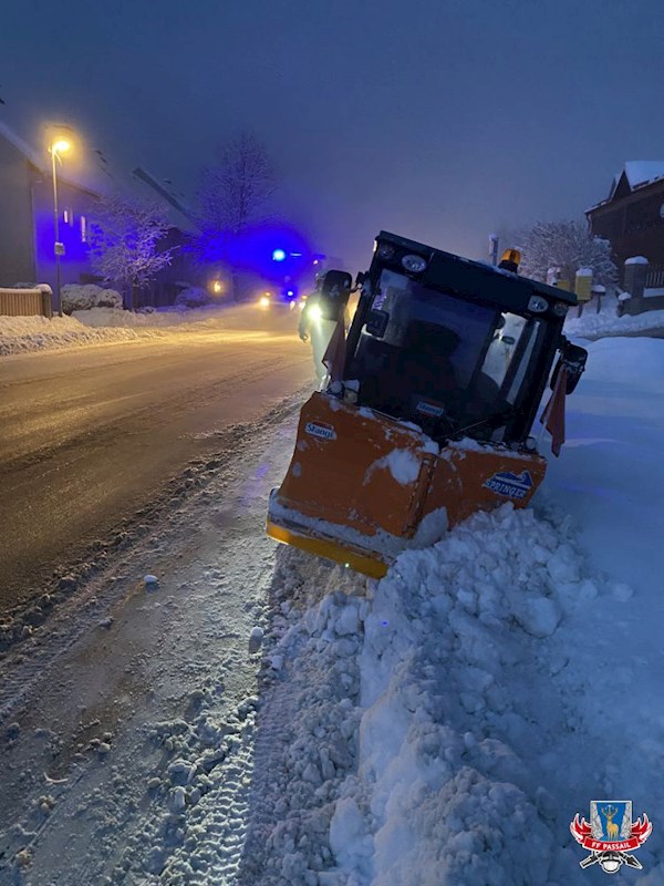 Tätigkeiten: Absichern der Unfallstelle, Regeln des starken Frühverkehrs, Bergen des verunfallten Räumfahrzeuges mittels Seilwinde