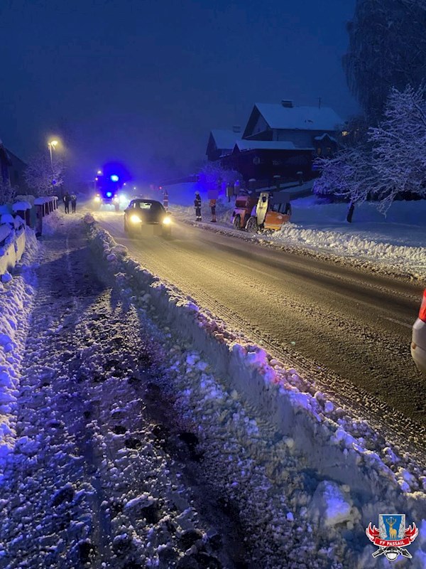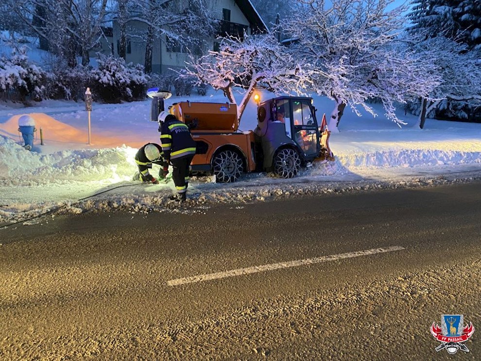 Grund der Alarmierung: Ein Räumfahrzeug ist vom Gehsteig abgekommen und im Straßengraben hängen geblieben.