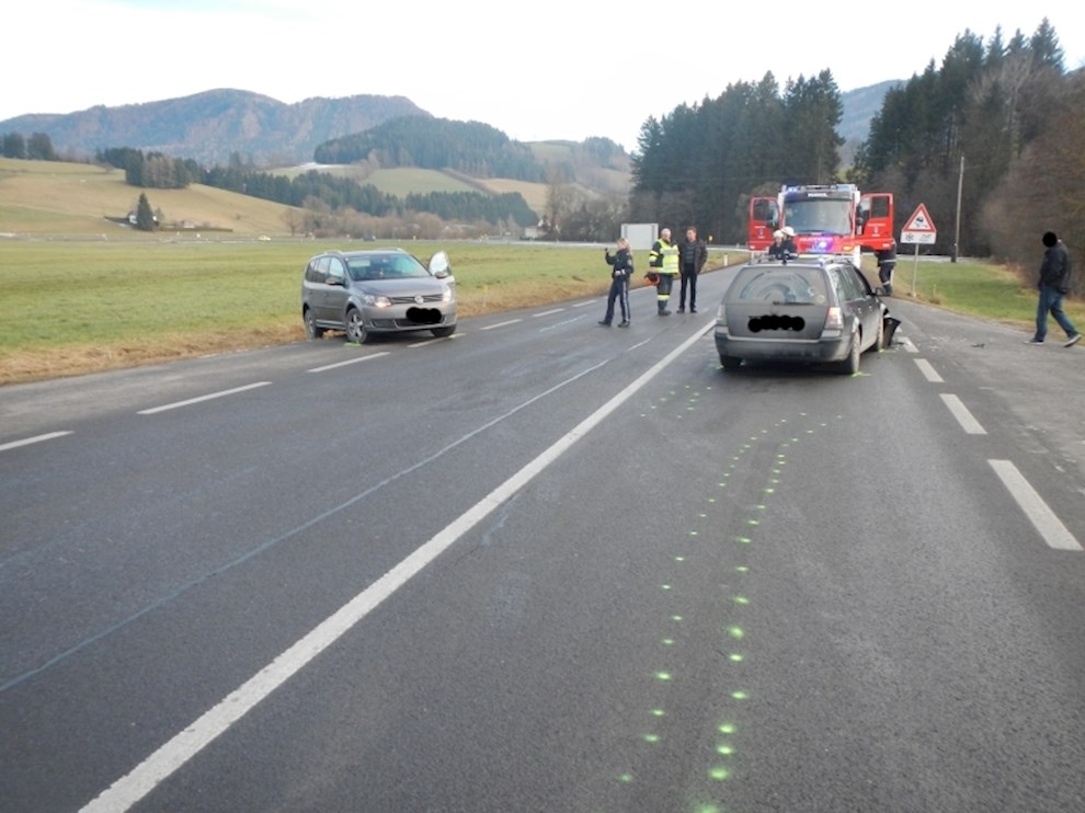 Zwei PKW sind kollidiert und zwei Personen wurden dabei leicht verletzt. Sie wurden vom Roten Kreuz versorgt.
