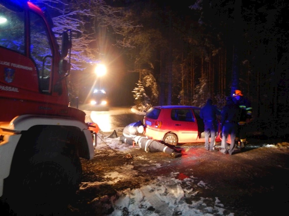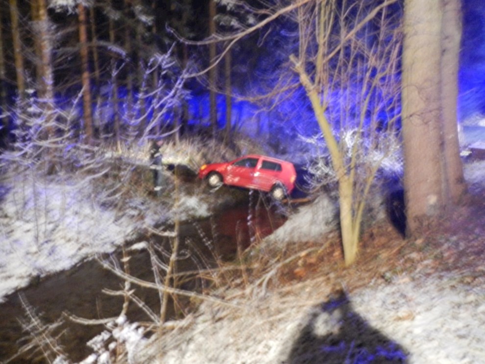Durch den nächtlichen Wintereinbruch und den dadurch schlechten Fahrverhältnissen ist ein PKW von der Fahrbahn abgekommen, gegen einen Baum geprallt und in den daneben liegenden Bach gefahren, wo er dann auf einem Stein aufgesessen stecken blieb. Die Fahrerin wurde leicht verletzt vom Roten Kreuz ins LKH Weiz gebracht.