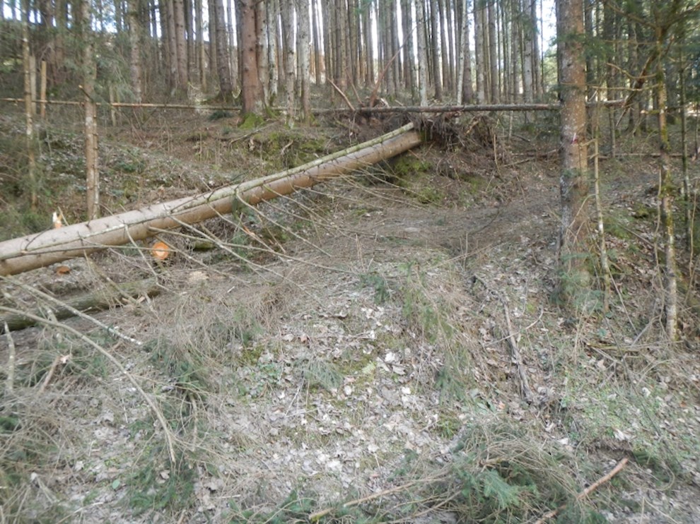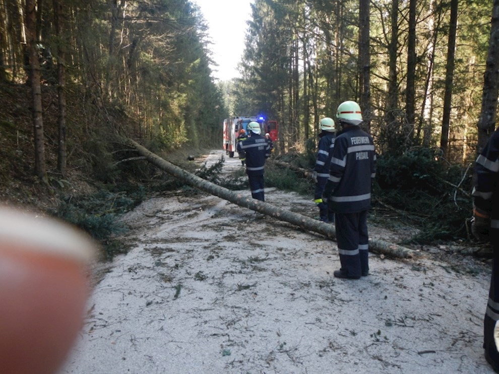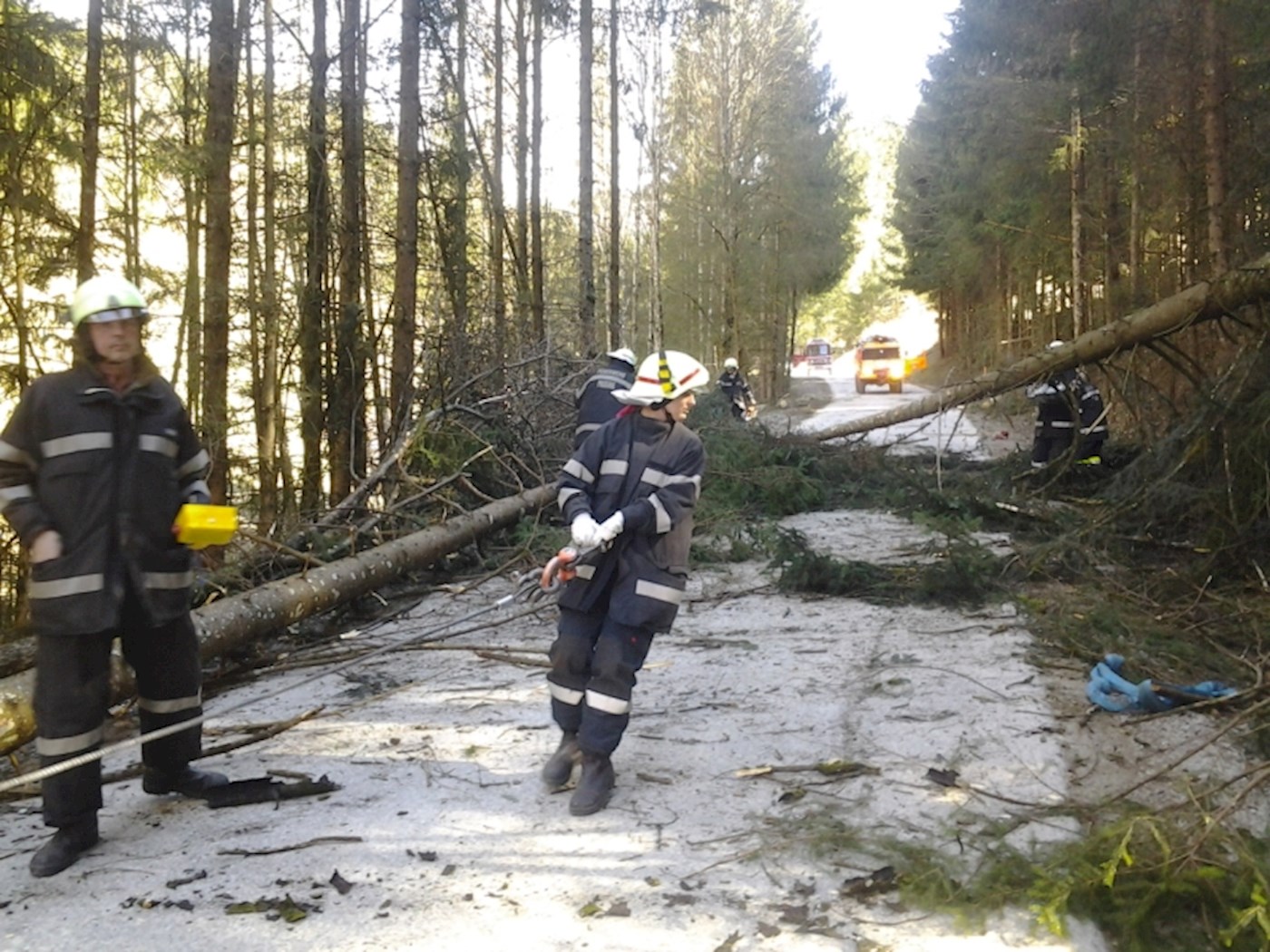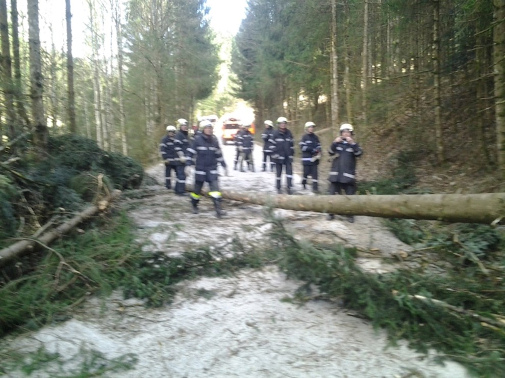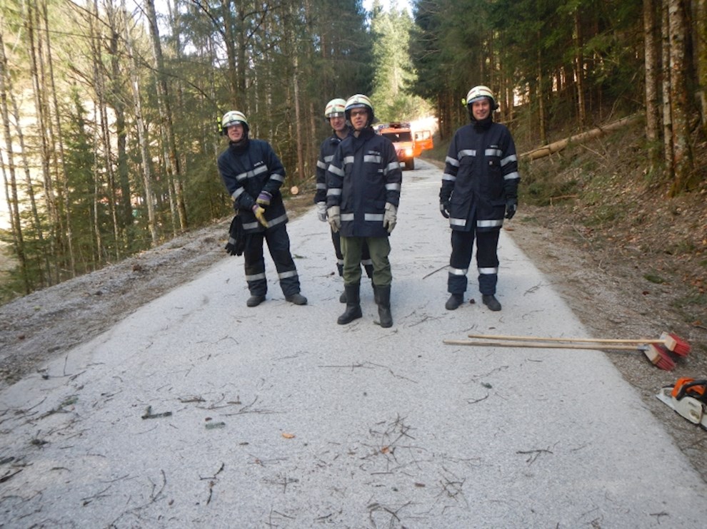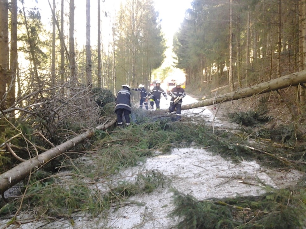Die Straße beim GH Sperl konnte wieder freigemacht werden. Das Freischneiden der anderen war wegen der vielen umgestürzten Bäume und des noch starken Windes zu gefährlich und deshalb musste sie gesperrt werden.