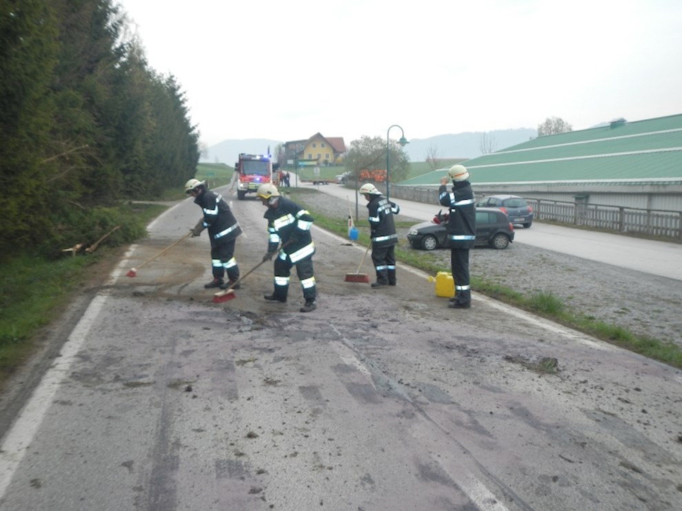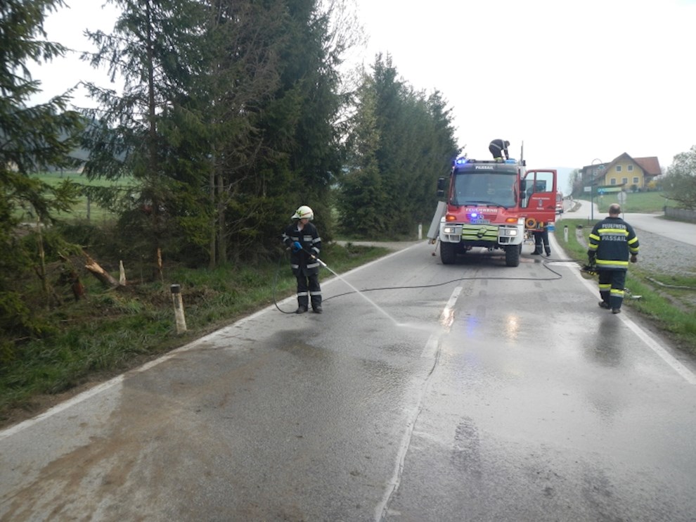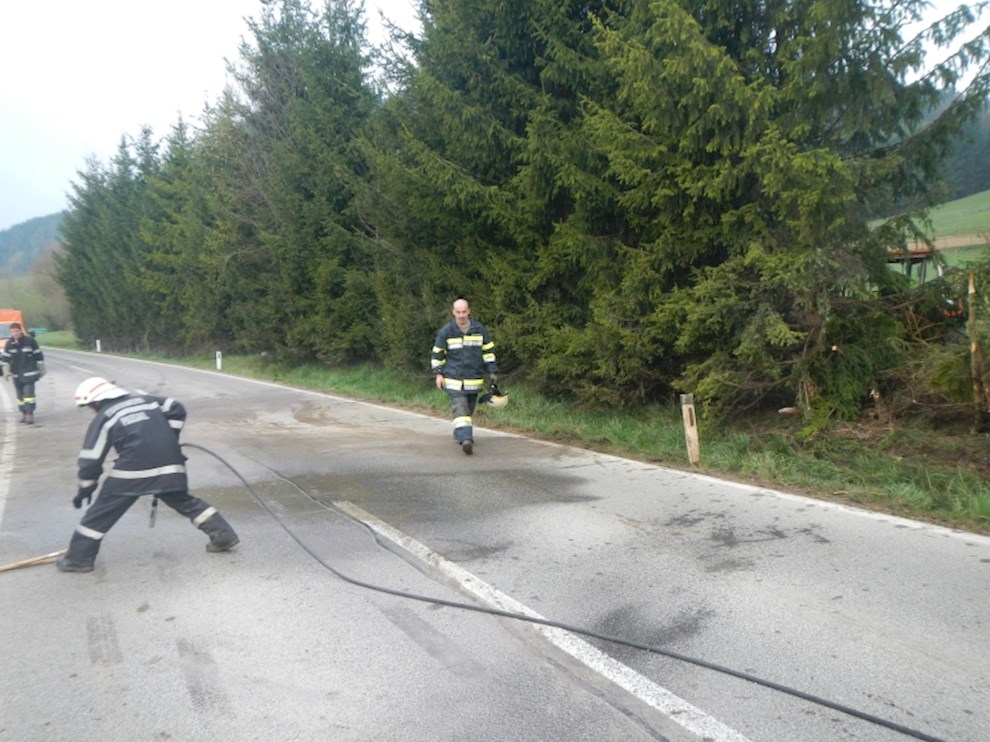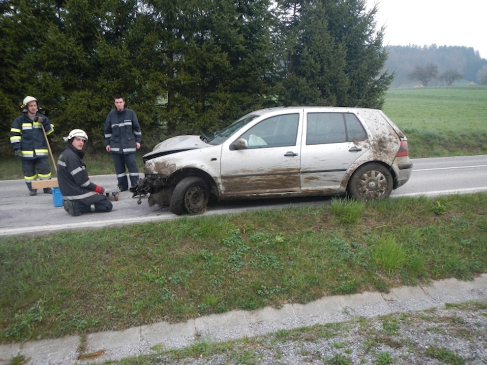 Ein PKW ist von der Straße abgekommen und gegen mehrere Bäume gekracht. Dabei wurde die Ölwanne beschädigt, sodass das Motoröl zur Gänze ausgeflossen ist.