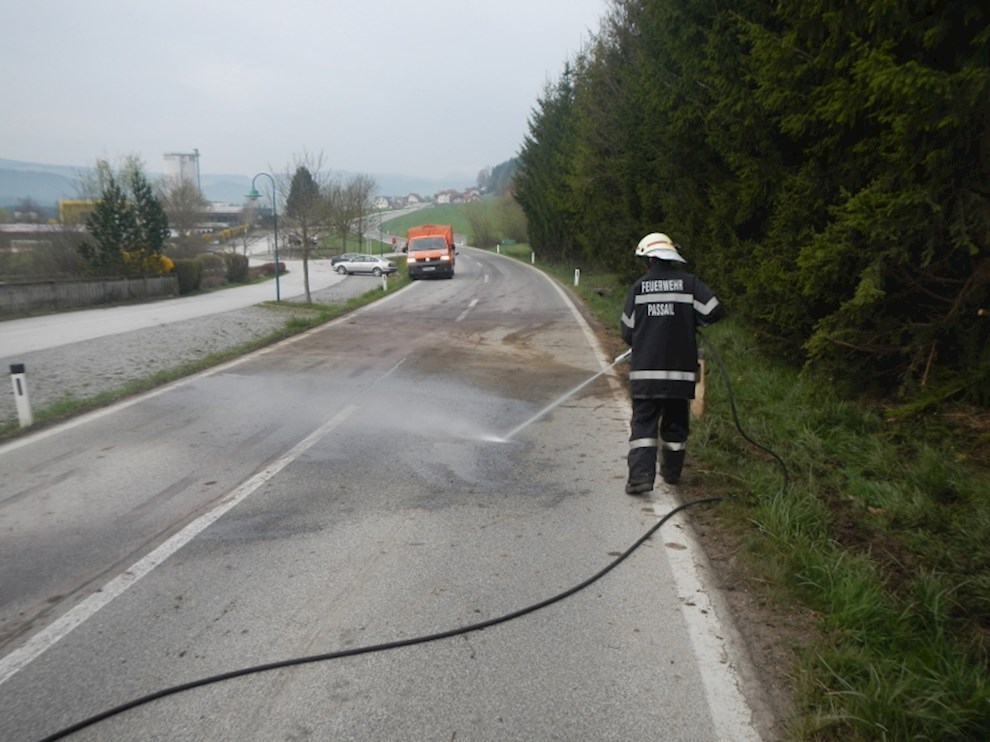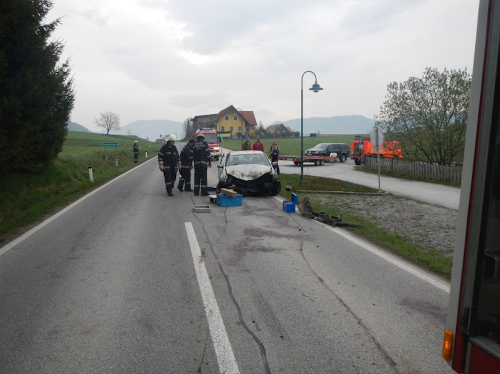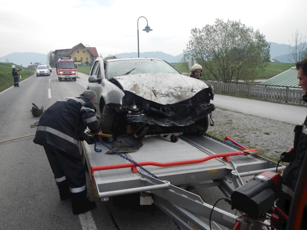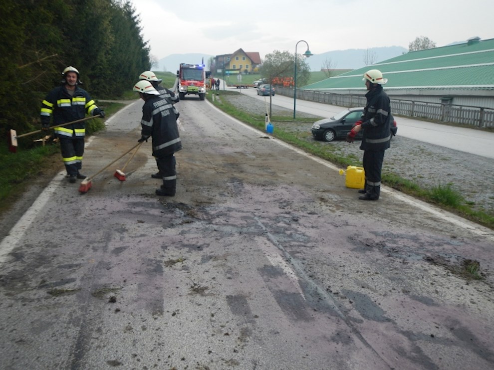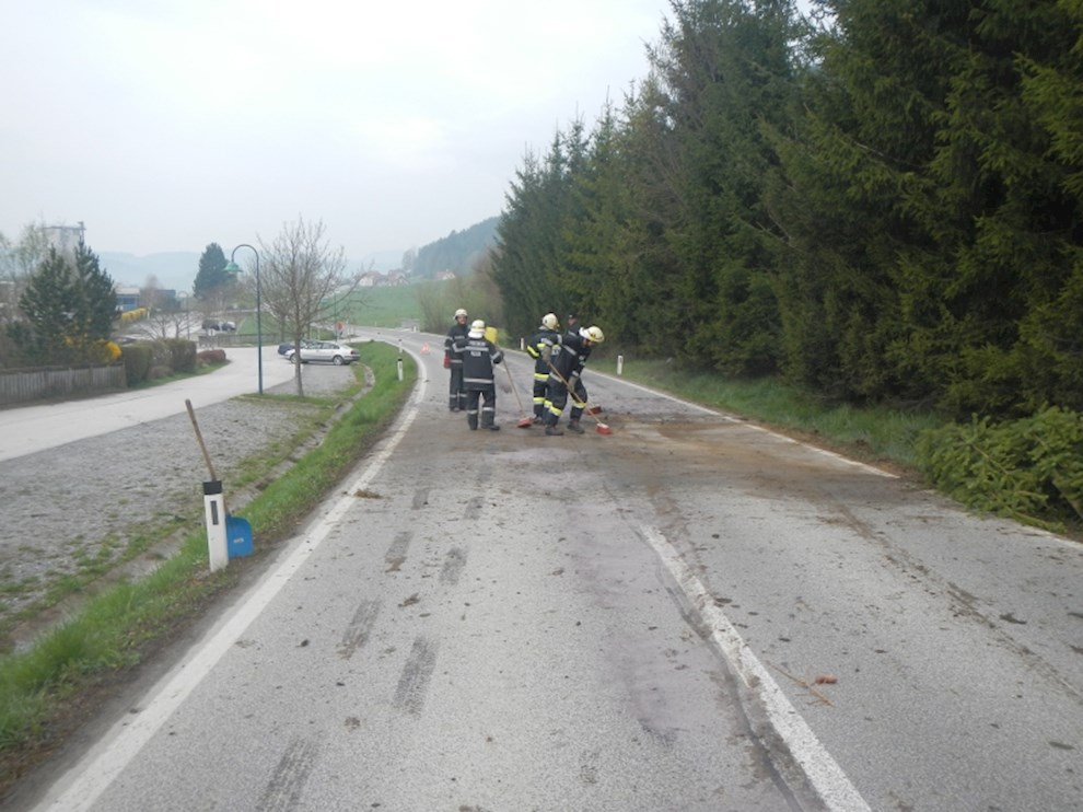 Ein PKW ist von der Straße abgekommen und gegen mehrere Bäume gekracht. Dabei wurde die Ölwanne beschädigt, sodass das Motoröl zur Gänze ausgeflossen ist.