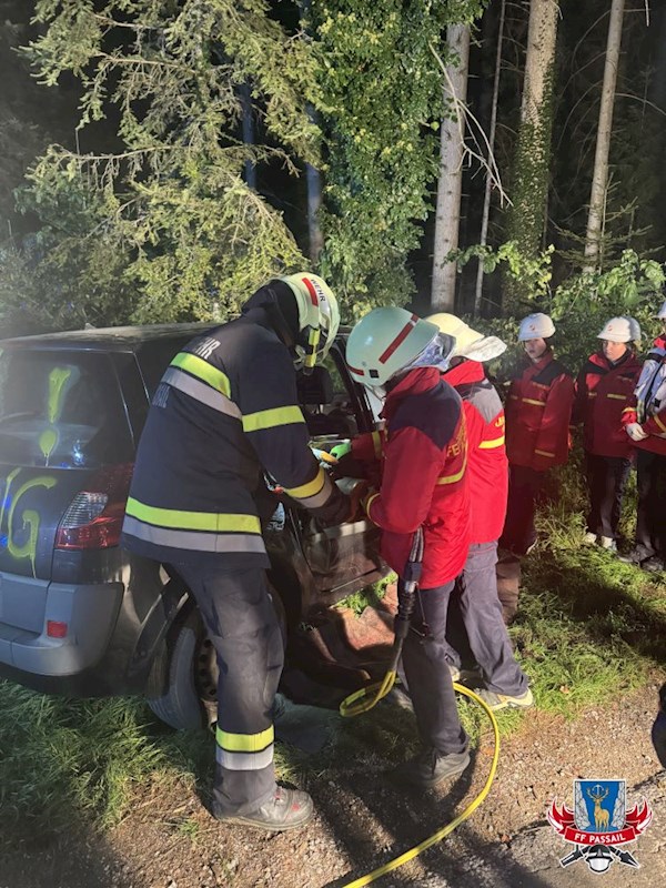 Nach einer kräftigen Stärkung vom Grill richteten alle ihren Schlafplatz ein. Doch lange Ruhe war nicht angesagt: Gegen 04:30 Uhr früh wurden die Jugendlichen durch Sirenengeheul geweckt und zur Einsatzübung nach Hohenau gerufen. Übungsannahme war ein Verkehrsunfall, bei dem eine eingeklemmte Person mit hydraulischem Rettungsgerät aus einem PKW befreit und das Fahrzeugwrack gesichert werden musste. Natürlich spielten auch hier die Beleuchtung und die Absicherung der Unfallstelle eine wesentliche Rolle. Zum Abschluss der Nachtübung stärkten sich alle noch bei einem kräftigen Frühstück und ließen die erlebnisreiche Nacht in gemütlicher Runde ausklingen.
