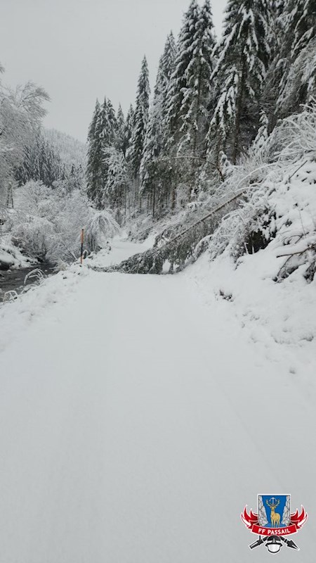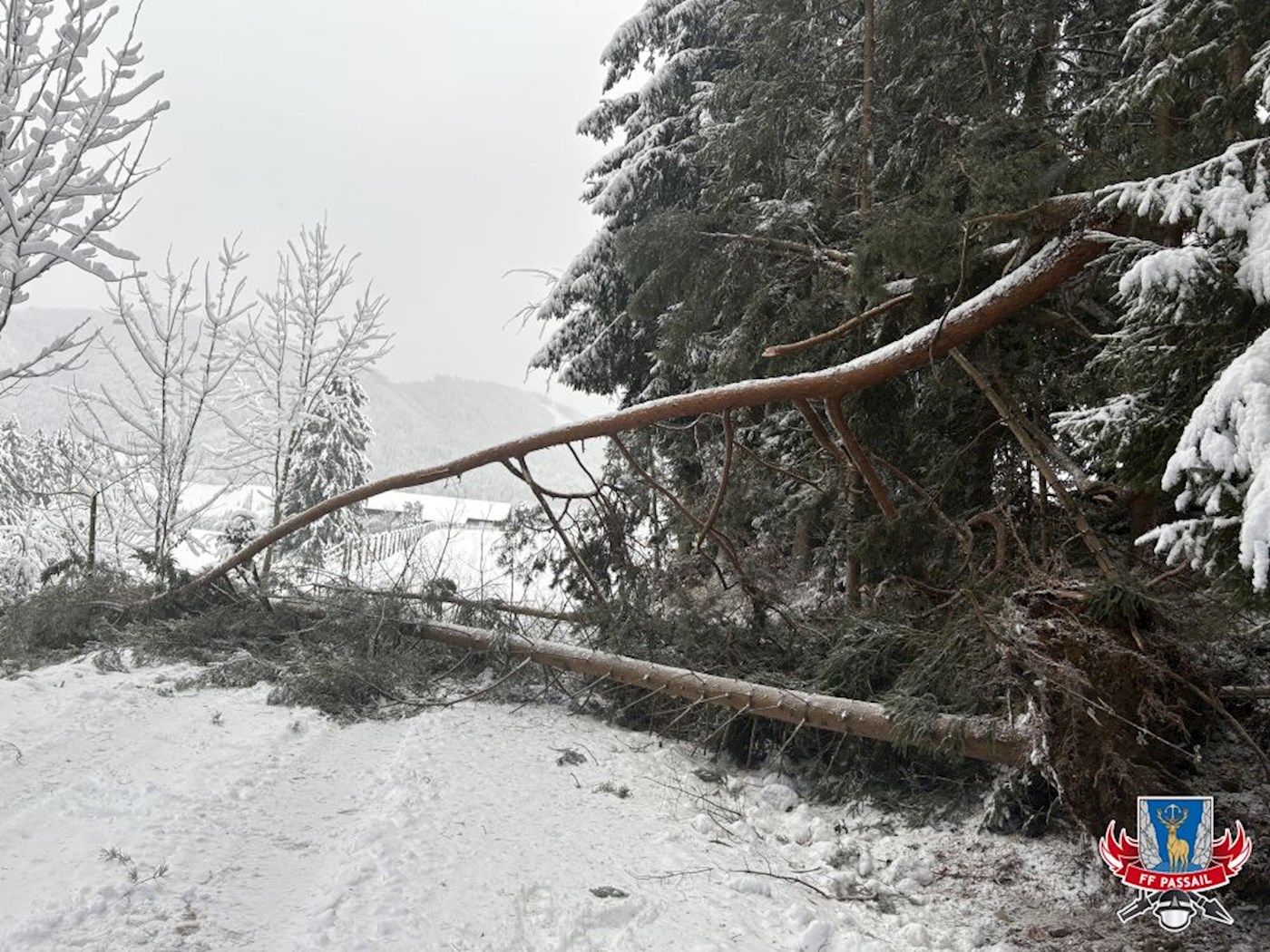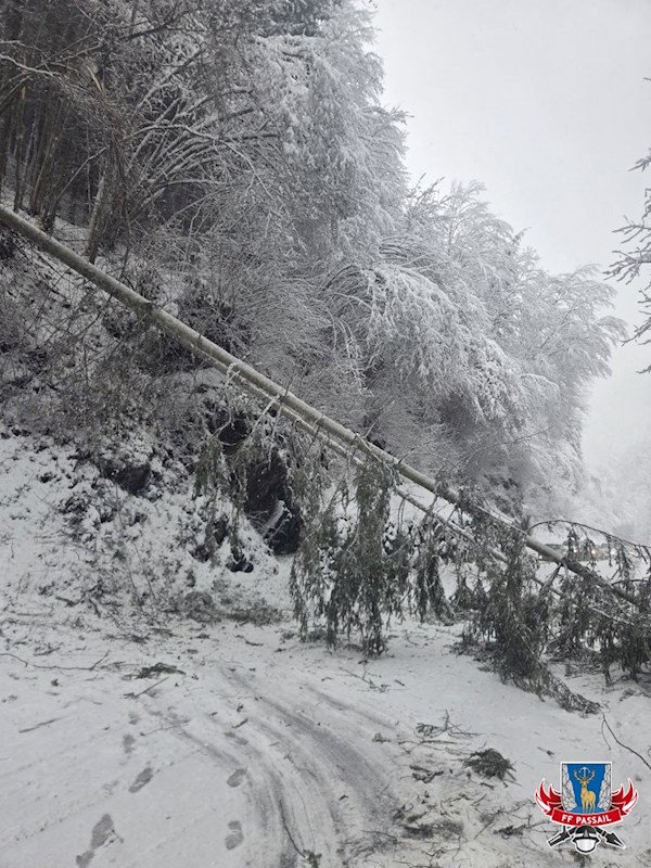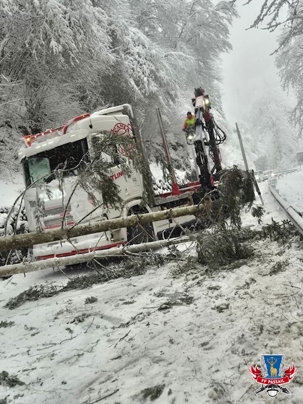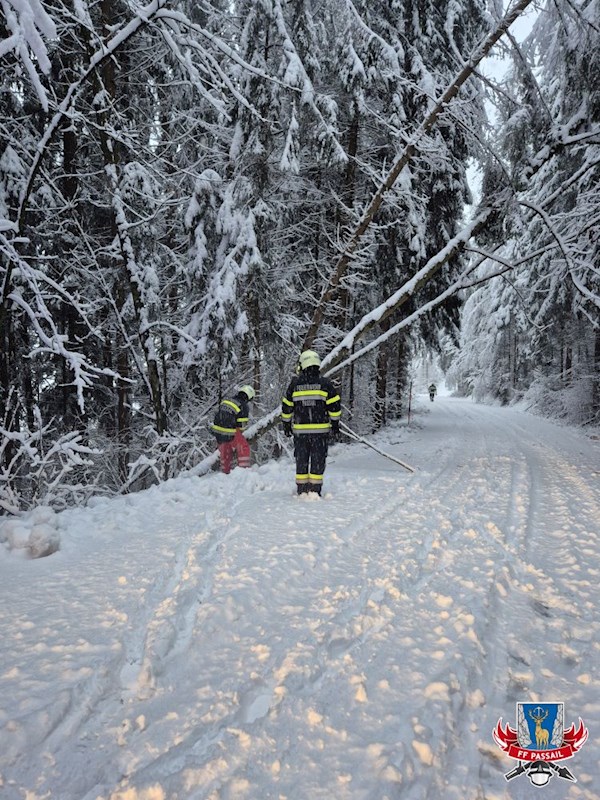 Grund der Alarmierung: Durch den Schneefall stürzten mehrmals Bäume auf die Fahrbahn.