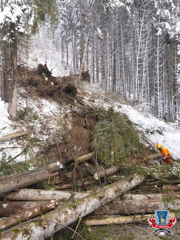 Grund der Alarmierung: Durch den Schneefall stürzten mehrere Bäume auf die Fahrbahn.